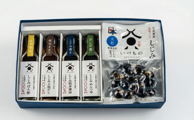宍道湖産しじみを100%使用した「無添加の本格調味料」と、プリッとした肉厚の「大粒しじみ(真空パック)」を組み合わせた、まさに“しじみ尽くし”の詰め合わせです。